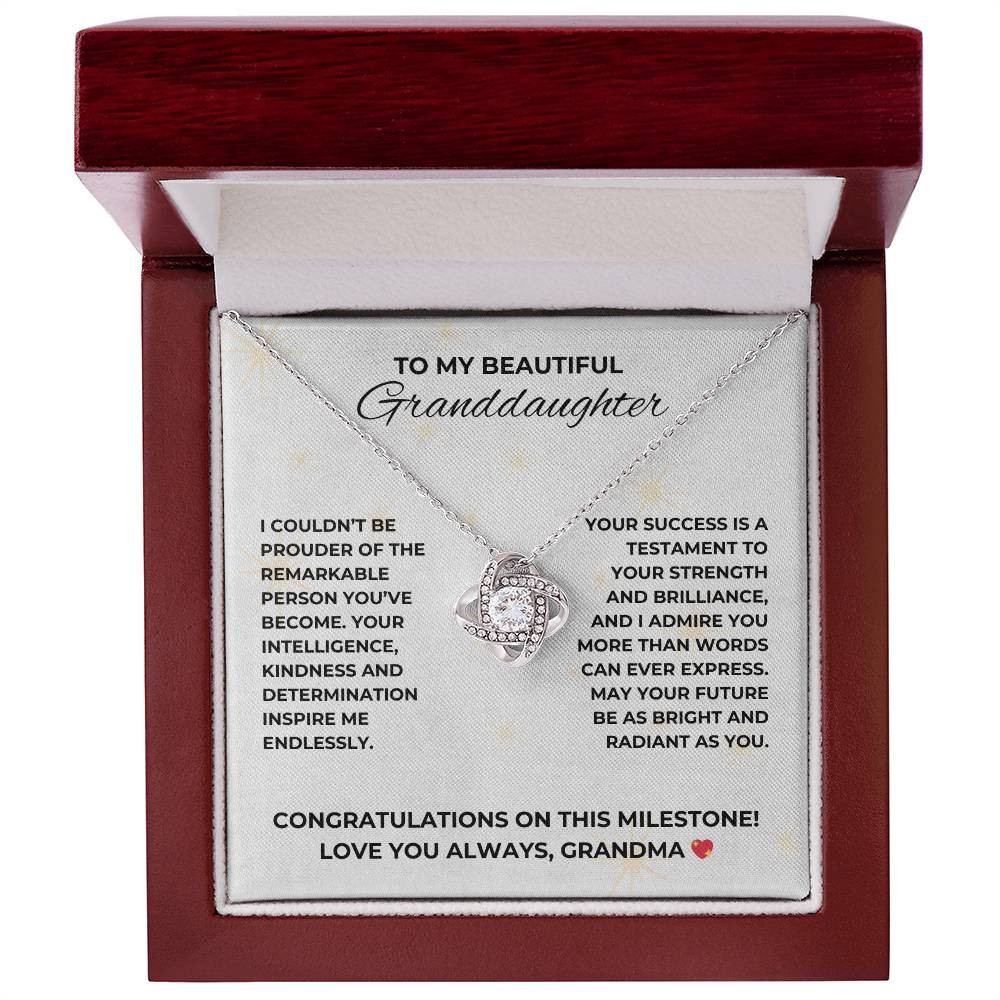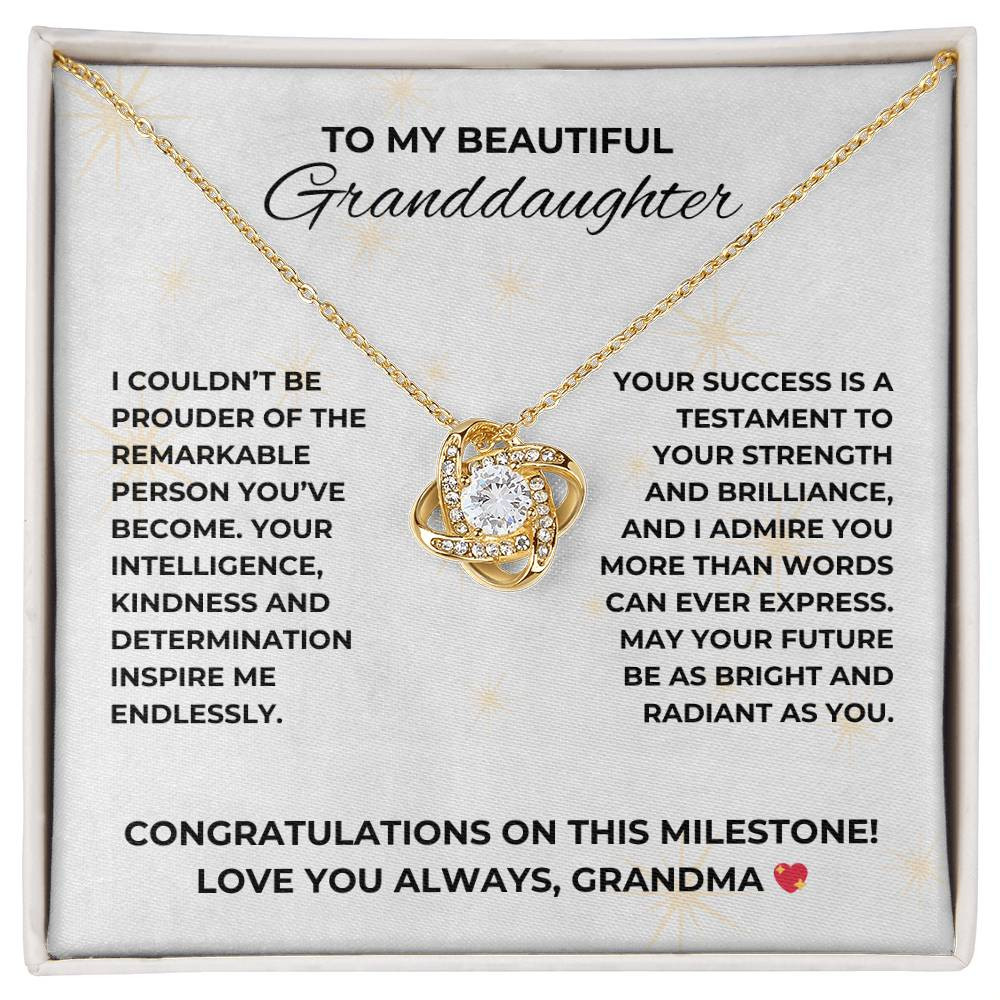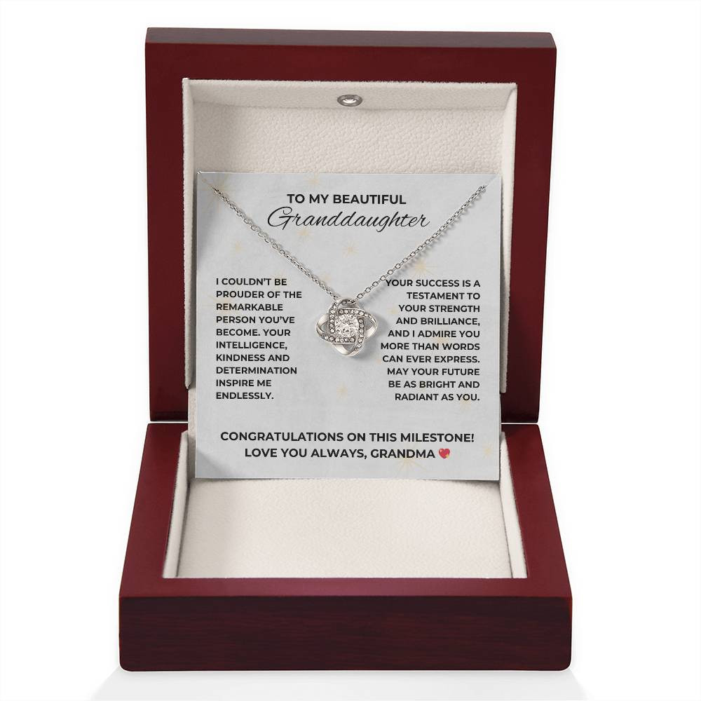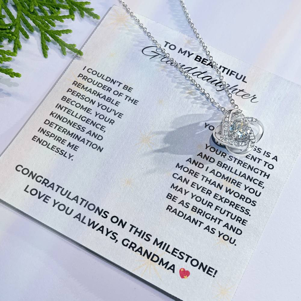 “Congratulations Milestone” Granddaughter from Grandma Love Knot Necklace