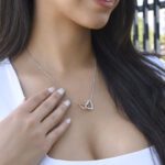 Surprise her with a gift that perfectly captures the essence of your eternal love. Introducing the exquisite Interlocking Hearts Necklace, adorned with sparkling cubic zirconia crystals, making it an ideal accessory for any occasion. Crafted from high-quality polished surgical steel with options in elegant rose gold or luxurious 18k yellow gold finishes, this necklace blends sophistication with charm.
