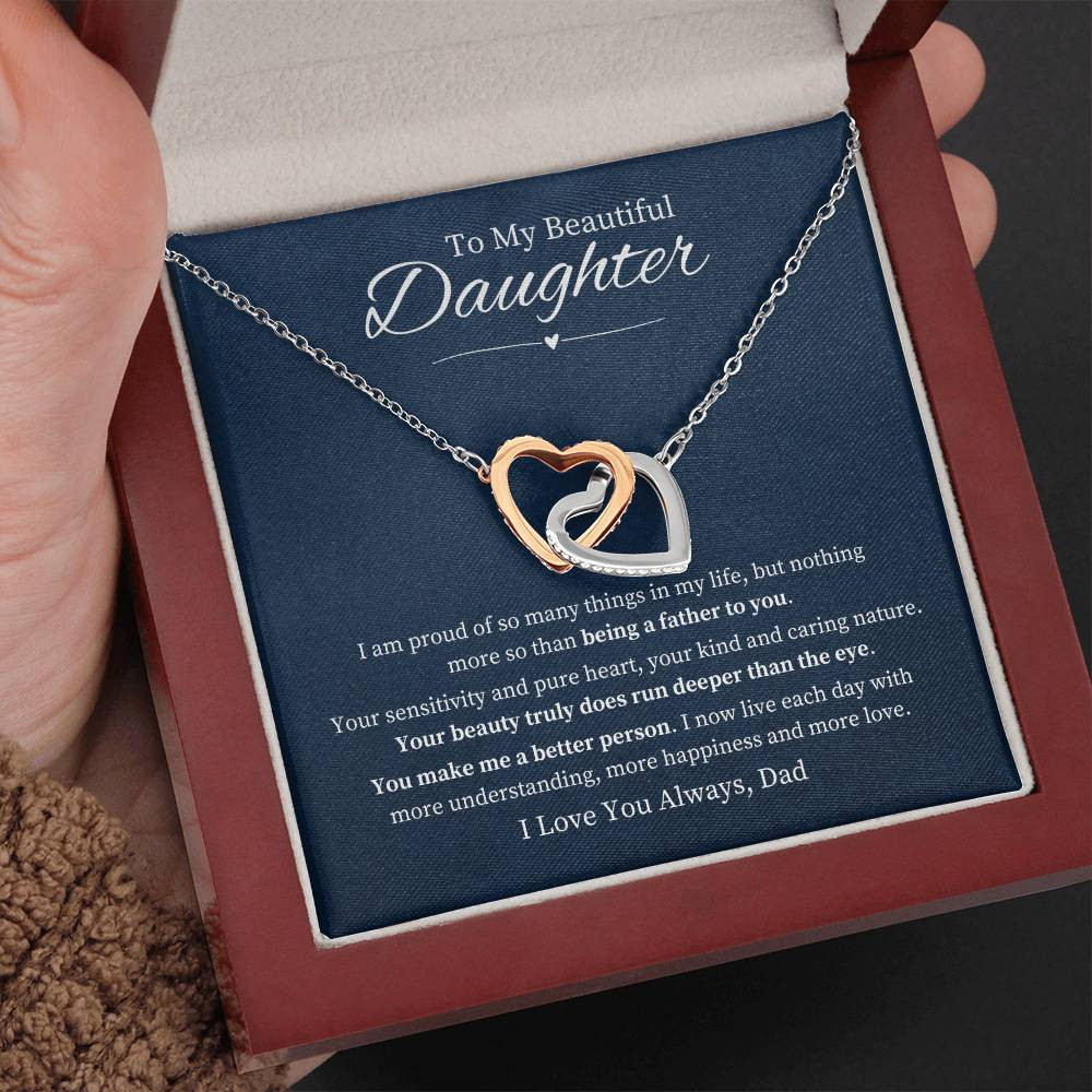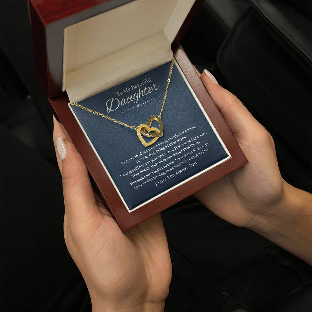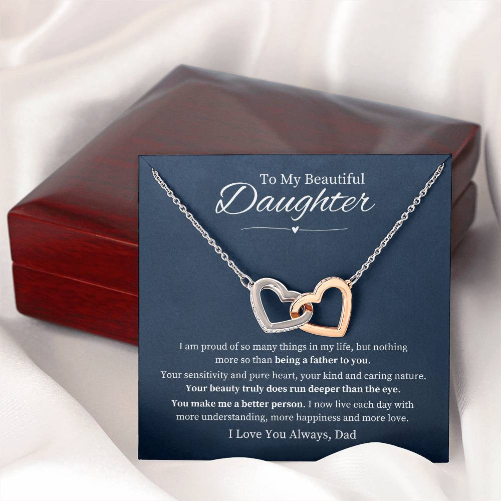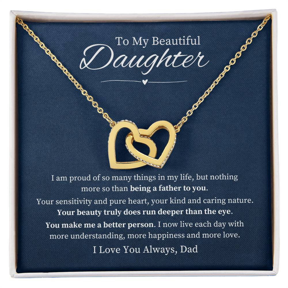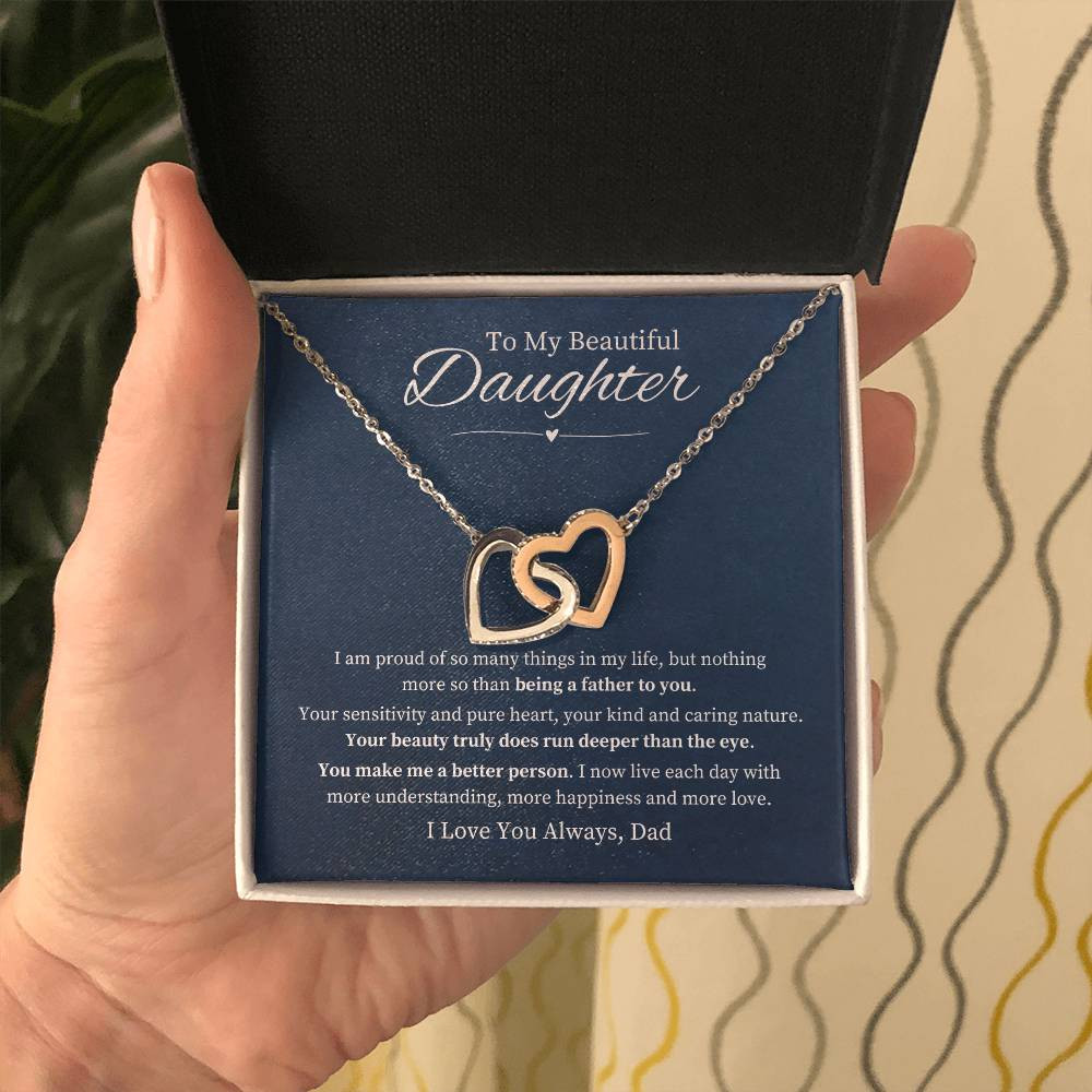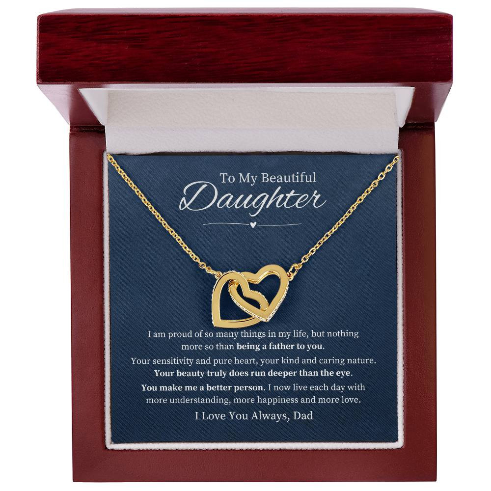 “So Proud” Daughter from Dad Interlocking Hearts Necklace